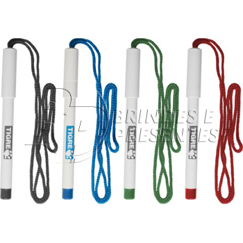 Caneta plástica com cordão