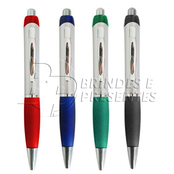 Esferografica, corpo prata com detalhe colorido.