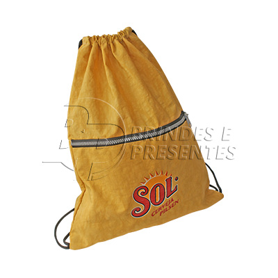 MOCHILA TIPO SACO C/ BOLSO FRONTAL E ZÍPER TRATOR - NYLON AMASSADO