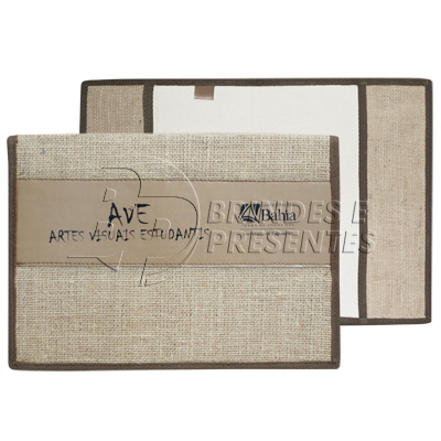 PASTA EM JUTA COM DETALHE EM COURO SINTETICO E PORTA CANETA