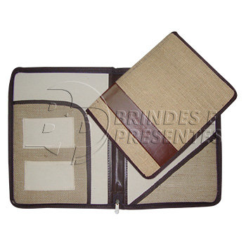 PASTA CHATA EM JUTA COM PORTA PAPEL E CARTÕES, COM ZÍPER