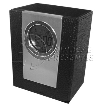 Portala Lápis com relógio digital em couro