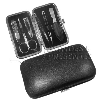 Kit com 6 peças: 2 cortadores, 1 tesoura, 1 pinça, 1 removedor de cutícula e 1 lixa de unhas Tamanho: 10,8 x 6,2 cm