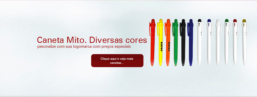 Possuímos uma grande linha de produtos: canetas, pastas, sacolas, mochilas, nécessaires em nylon e plásticas ou couro (legítimo ou sintético), além de materiais para escritórios como blocos, agendas, cadernos, kit de cadernos com caneta, kits ecológicos, acessórios para vinhos e queijos, canecas em PS, inox ou em acrílico, copos, capas para chuva, pins resinados, niquelados ou dourados, pins em formato especial. Também dispomos de materiais eletrônicos e para informática com Kit USb, Kits para mouse, mouse pads, calculadores, relógios de mesa ou parede e muito mais.