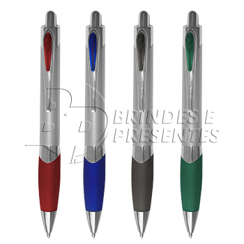 Caneta Plática, Retrátil com detalhes cromados