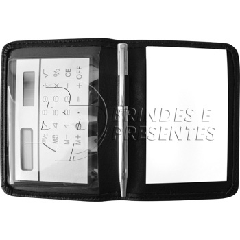 Kit com calculadora, bloco e caneta