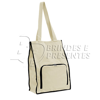 SACOLA EM LONA 100% ALGODÃO COM BOLSO FRONTAL